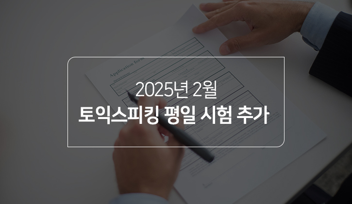 2025년 2월 5일(수), 2025년 2월 19일(수) 토익스피킹 평일 시험이 추가 시행됩니다. 주말에 응시가 어려우셨던 분이라면 주목! <토익스토리>가 평일 시험 일정부터 접수 마감일, 성적 발표일까지 알려드립니다. 또, 토익스피킹 수험자분이라면 누구나 참여할 수 있는 설문 이벤트도 준비되어 있는데요. 설문에 참여하신 분 중 추첨으로 경품을 지급합니다. 물론 토익스피킹 응시권도 경품 항목에 포함되어 있고요. 궁금하시다면 지금 살펴보세요!