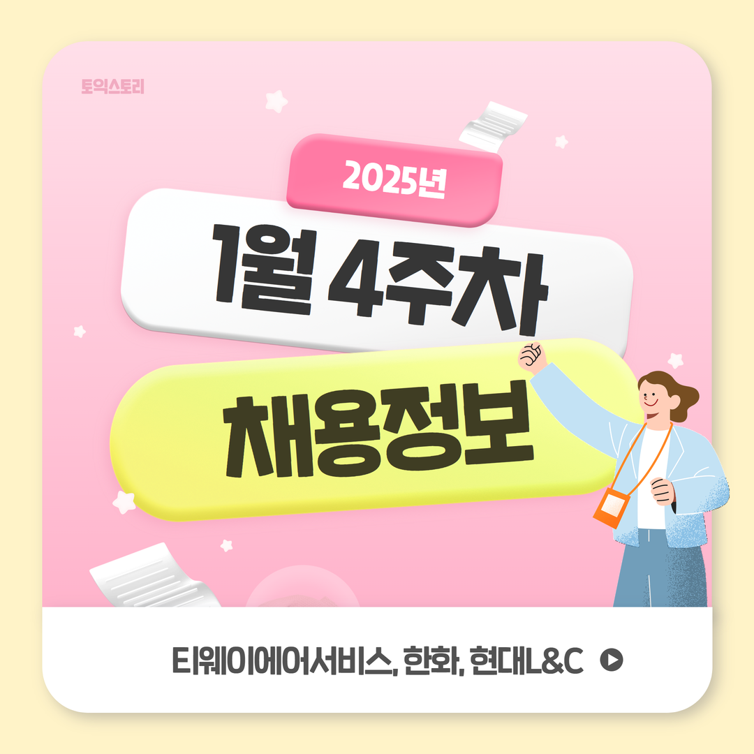 <토익스토리>가 티웨이에어서비스, 한화, 현대L&C 채용 정보를 안내해 드립니다. 모집 마감일과 토익, 토익스피킹 성적 기준을 확인해 보세요!