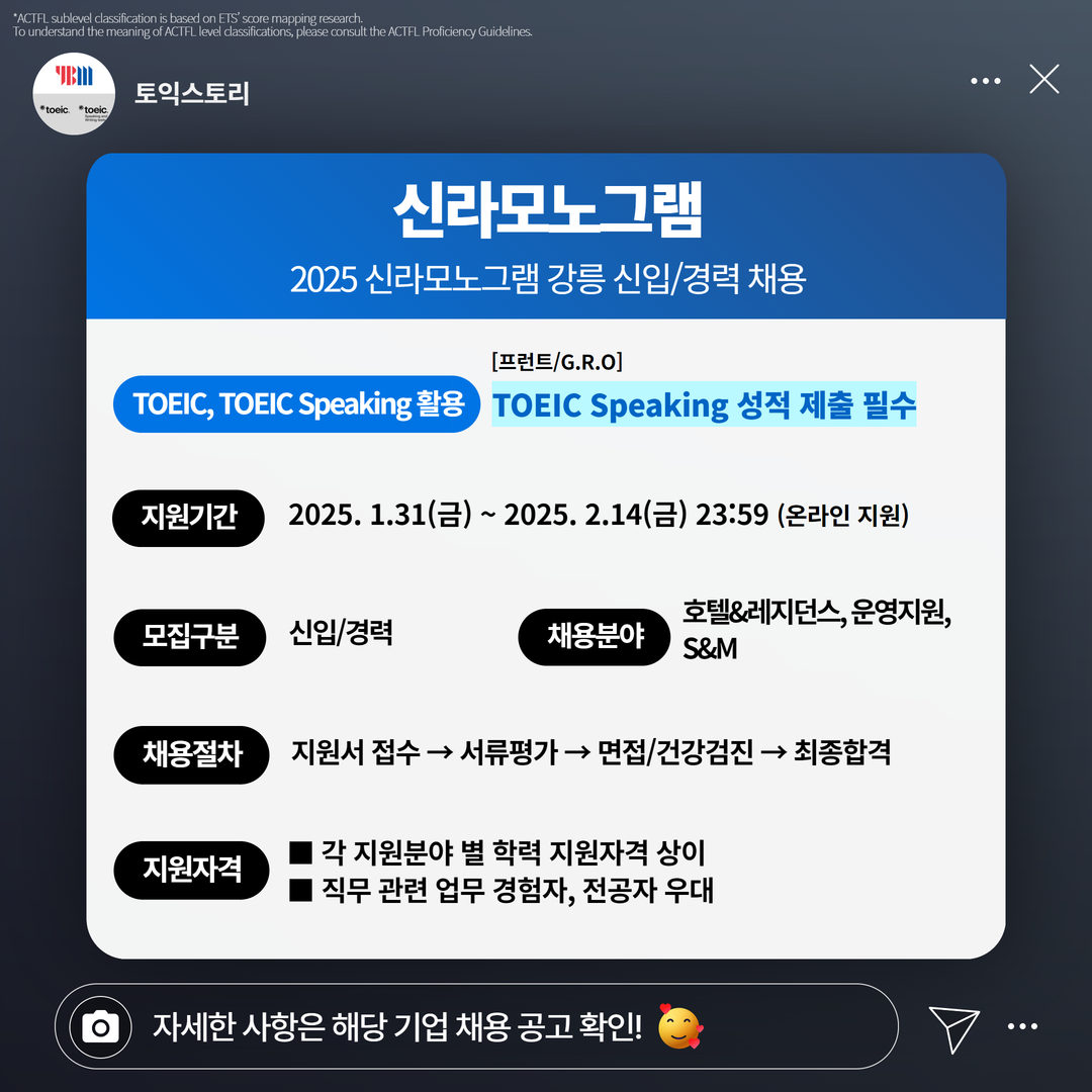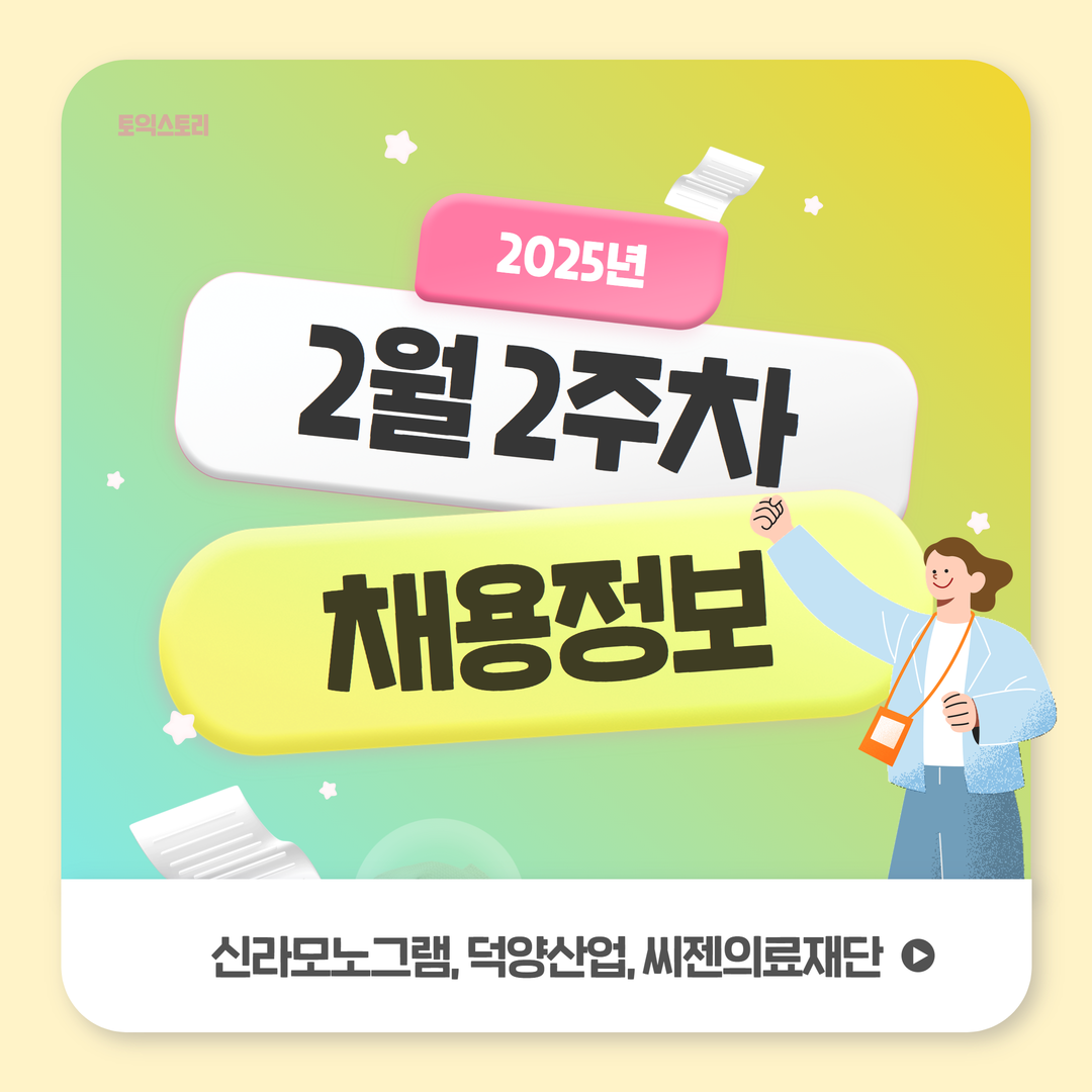 <토익스토리>가 신라모노그램, 덕양산업, 씨젠의료재단 채용 정보를 안내해 드립니다. 모집 마감일과 토익, 토익스피킹 성적 기준을 확인해 보세요!