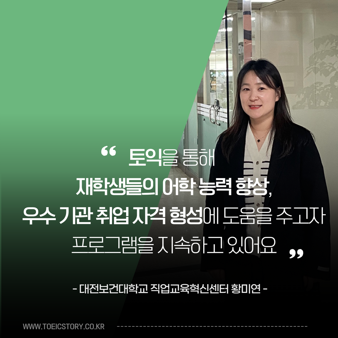 교내 영어경시대회는 왜 '토익'을 활용하는지, 학생들의 자세한 반응은 어떠한지! 자세한 이야기를 들어보고자 대전보건대학교 직업교육혁신센터 황미연 선생님을 만났습니다.