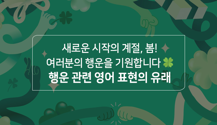 봄의 기운이 부쩍 느껴지는 요즘, 새 학기가 시작된 지도 어느덧 한 달이 지났습니다. 새로운 환경과 사람들을 마주하며, 설렘과 긴장이 교차하는 시기인데요. 이럴 때일수록 마음 한편에 작은 행운 하나쯤 기대하게 되죠. 영어에도 행운과 관련된 다양한 표현들이 존재하는데요. 오늘 <토익스토리>에서는 행운과 관련된 영어 표현과 그 유래에 대해 소개해 드리겠습니다. :)