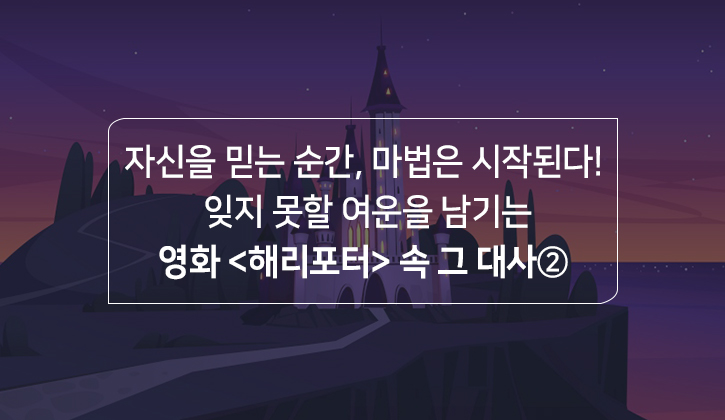 이번 <명작 속 그 대사>에서는 지난 시간에 이어 영화 <해리포터>를 다시 만나보려 합니다. 총 7편의 시리즈로 이야깃거리도 다양할 뿐만 아니라, 주인공들의 모험을 통해 전하는 용기와 희망의 메시지도 돋보이는 영화인데요.