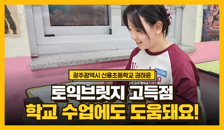 이러한 강 팀장님의 교육 방법 아래 영어를 즐기며 배우고 있는 한 학생이 있습니다. 바로 신용초등학교 6학년 권하윤 양인데요. 토익브릿지(듣기,읽기) 시험에서는 97점을, 토익브릿지 말하기&쓰기 시험에서는 각각 만점을 취득했죠. 토익브릿지 응시 경험이 학교 수업에도 도움이 된다고 말했는데요. 어떤 점에서 도움이 되었는지부터 평소 영어 공부를 어떻게 하고 있는지 등 질문해 봤습니다. 같이 확인하시죠 :)