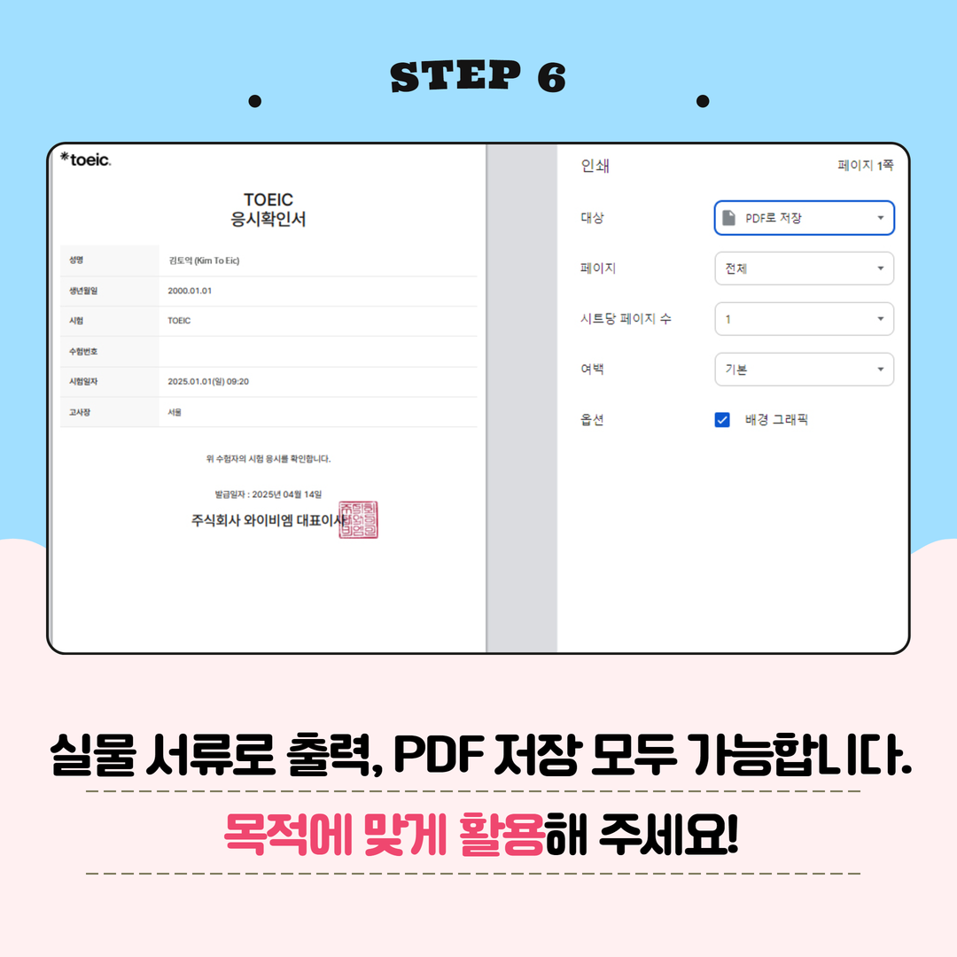 | TOEIC Speaking&Writing | 시험 종료 후 다음날부터 출력 가능 |