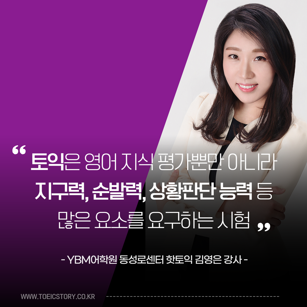 안녕하세요! YBM어학원 대구 동성로센터에서 토익을 강의하고 있는 핫토익 김영은 강사입니다. :)