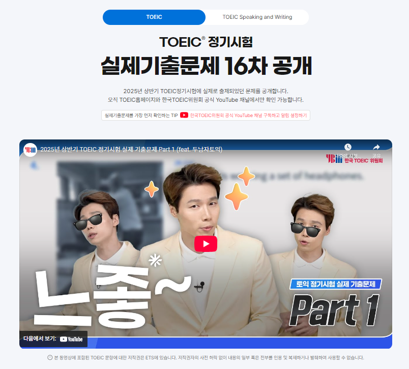 지금까지 2025년 상반기 토익 정기시험 실제 기출문제 16차 공개 소식을 전해드렸습니다. YBM 한국TOEIC위원회 유튜브 채널을 구독하시면 이러한 토익 학습 자료뿐만 아니라 유용한 정보까지 가장 빠르게 확인하실 수 있습니다. 구독하기 버튼 클릭까지 잊지 마세요 😉🌸