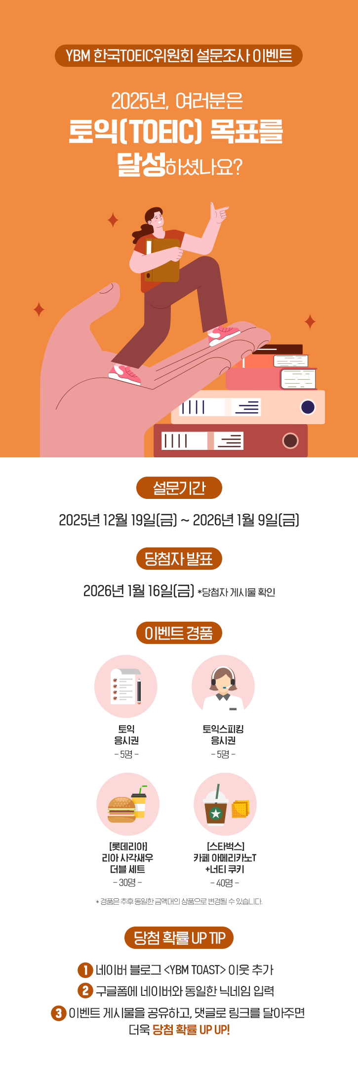 | [당첨자 발표] 2025년, 여러분은 토익(TOEIC) 목표를 달성하셨나요? (0) | 2026.01.16 |