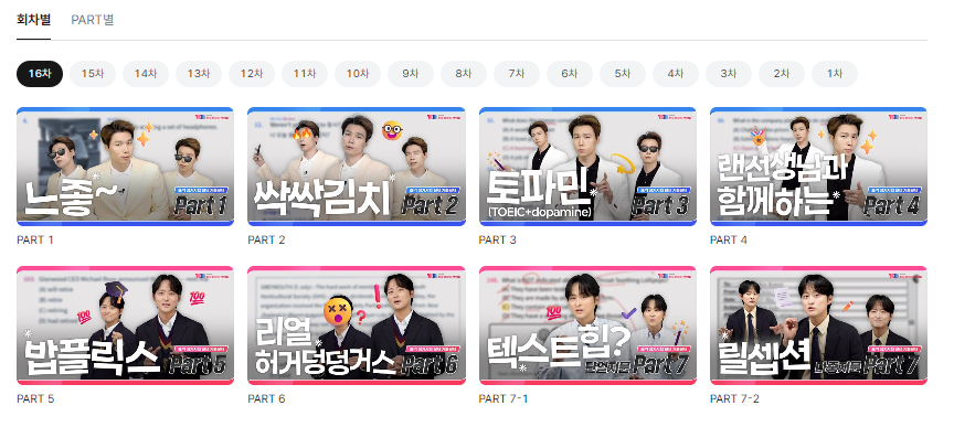 '토익 정기시험 실제 기출문제 17차' 페이지에 접속하시면 바로 보이는 파트 5 영상! 썸네일만 봐도 어서 클릭하고 싶지 않나요? 🏋🏻 그렇다면, 파트 5 영상만 확인할 수 있는 건 아니겠죠?