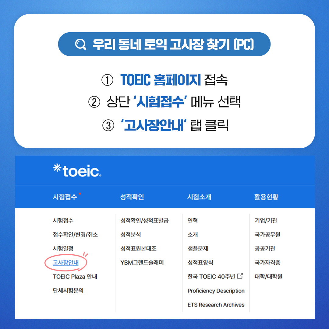 🔎 우리 동네 토익 고사장 찾기 (PC)
