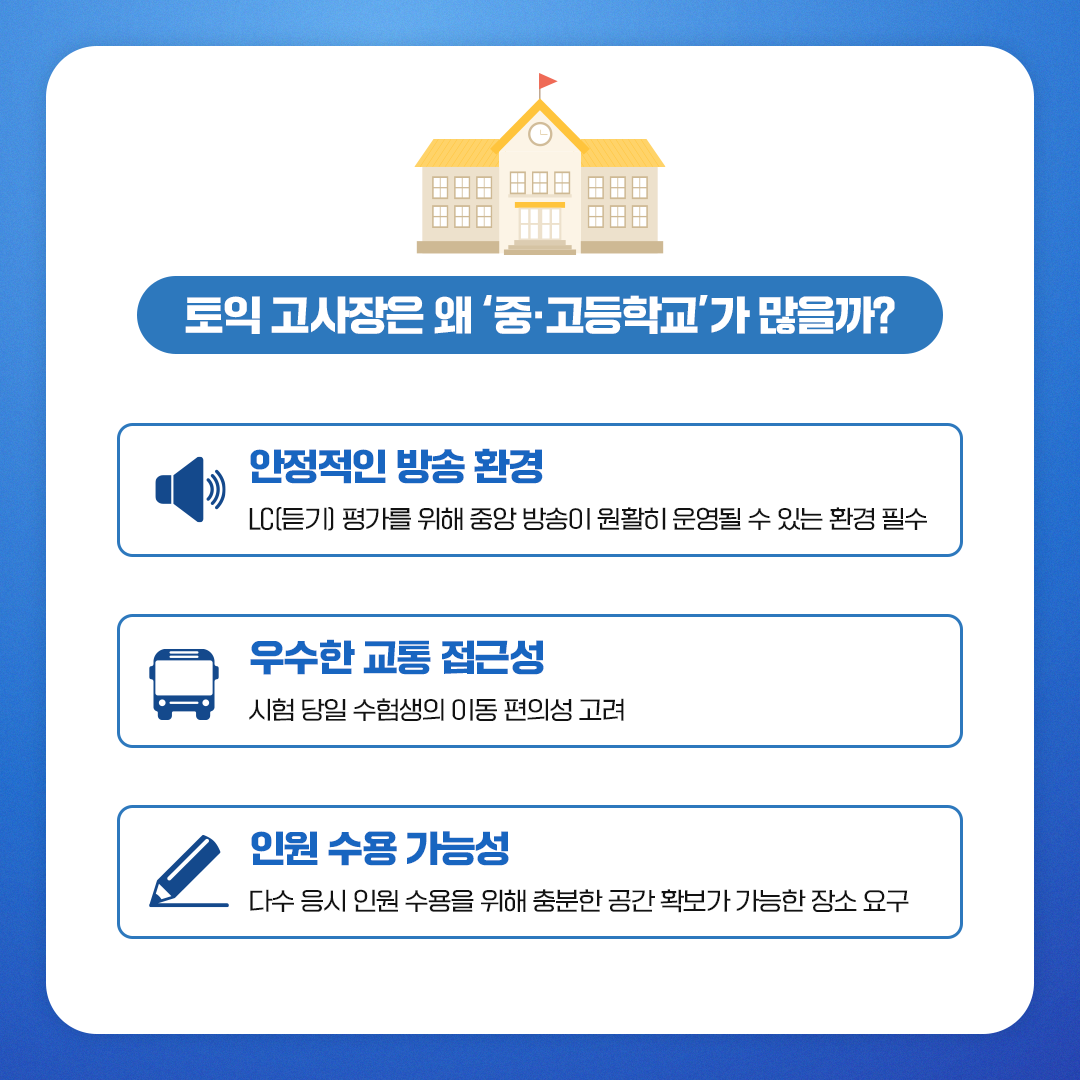 토익 고사장은 왜 대부분 중학교일까? 토익 고사장의 조건! - YBM 한국토익위원회 공식 블로그
