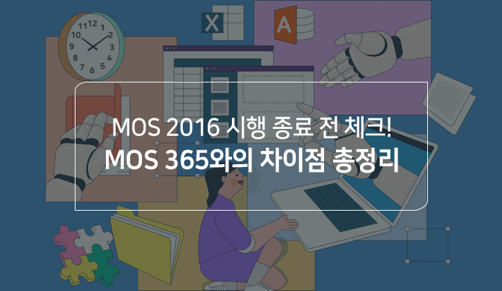 MOS는 ‘MOS 2016’과 ‘MOS 365’ 총 2가지 버전으로 시행되고 있습니다. 단, 2026년 6월 22일(월)부터는 MOS 2016의 시행이 종료될 예정인데요. 그렇다면 MOS 2016과 MOS 365의 주요 차이점은 무엇일까요?