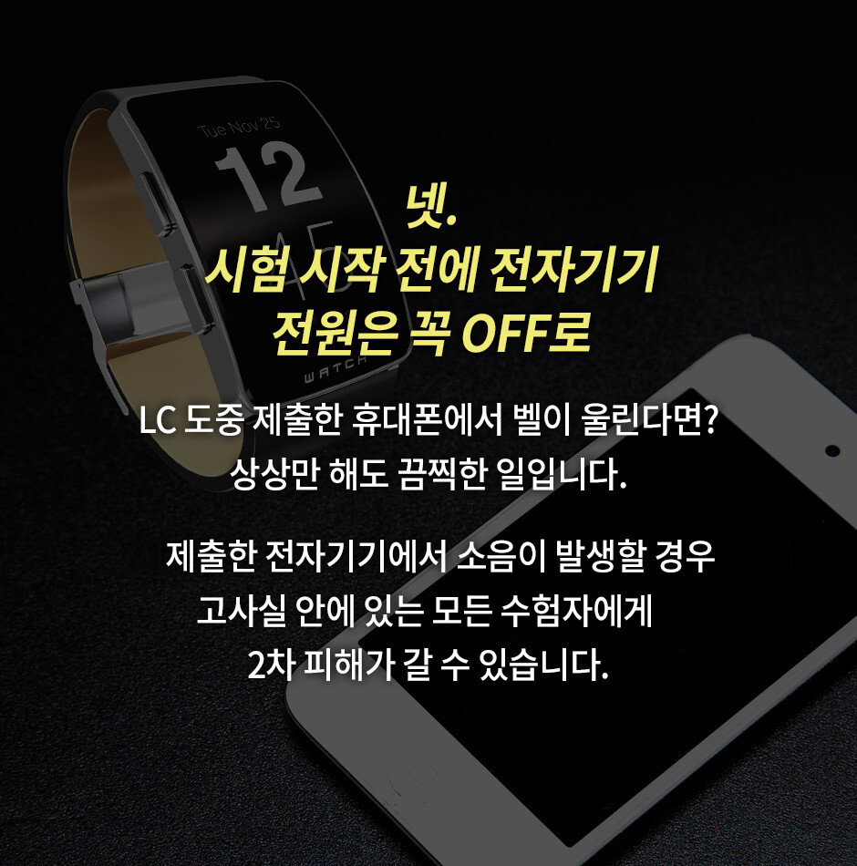 시험 시작 전에 전자기기 전원은 꼭 OFF로