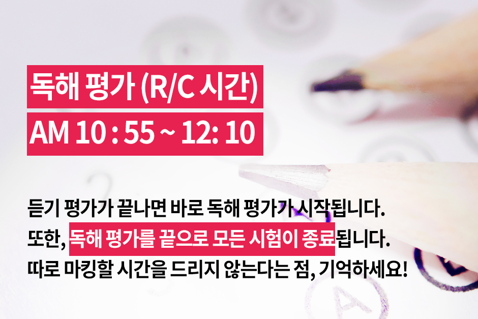 듣기 평가가 끝나면 바로 독해 평가(R/C)가 시작됩니다.