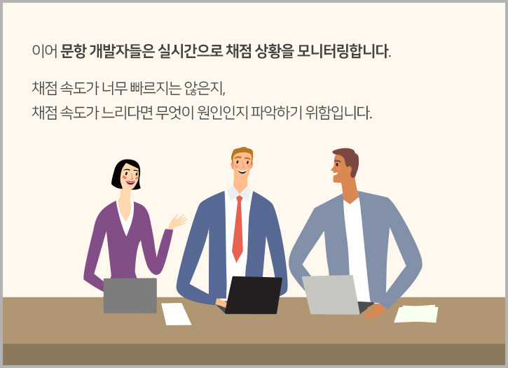 이어 문항 개발자들은 실시간으로 채점 상황을 모니터링합니다.