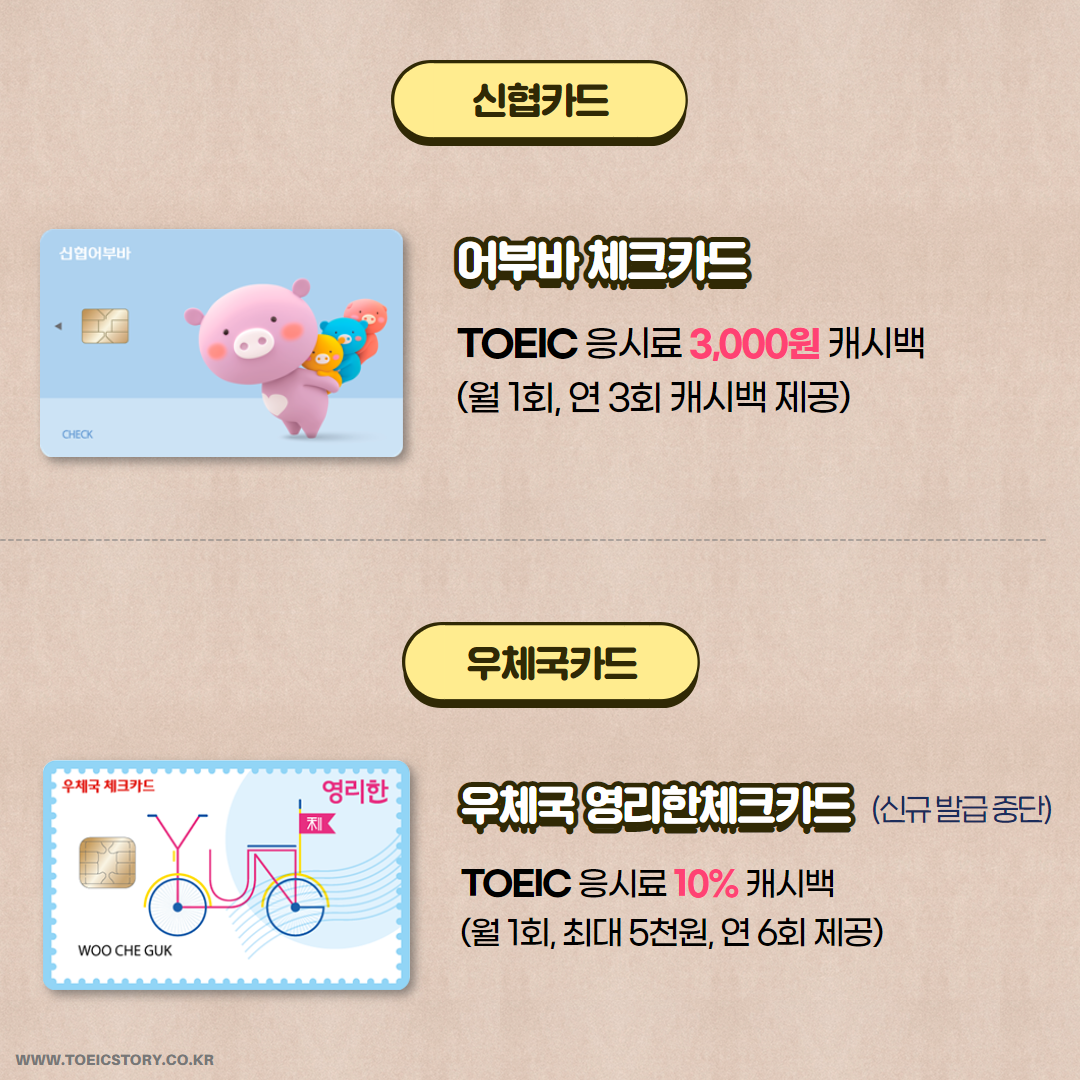 수험자 필독! 토익, 토익스피킹 할인 카드 안내 (2023.04)