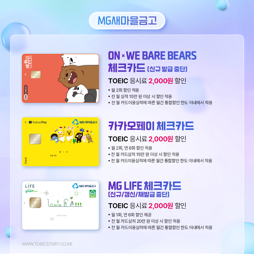 | MG새마을금고 | MG스쿨 체크카드 | TOEIC 응시료 2,000원 할인 |