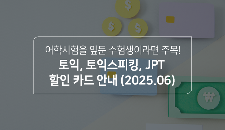 어학시험을 앞둔 수험생이라면 주목! 토익, 토익스피킹, JPT 할인 카드 안내 (2025.06)💳