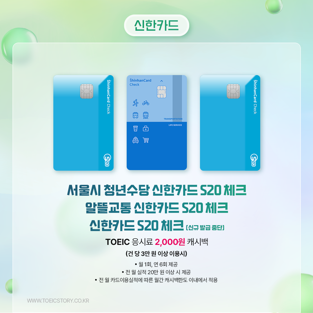 | 기후동행카드(체크) | TOEIC 응시료 5% 캐시백 할인 |